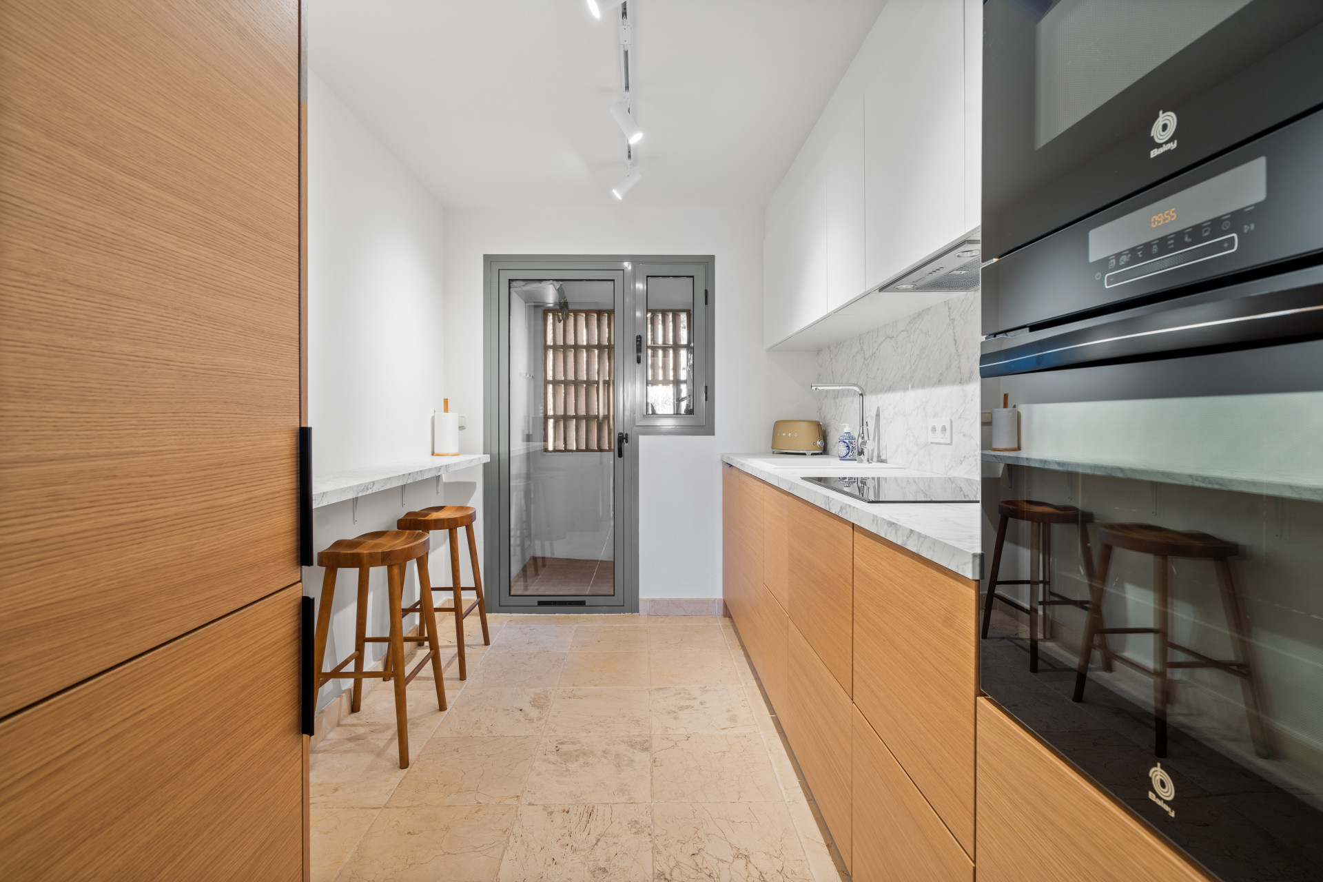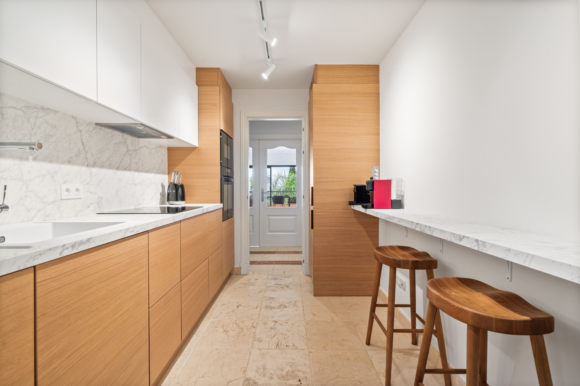 The fully renovated kitchen features modern finishes, sleek cabinetry, and a convenient breakfast bar, combining functionality with contemporary design. Both bedrooms are well-proportioned, with the principal suite offering an en-suite bathroom.