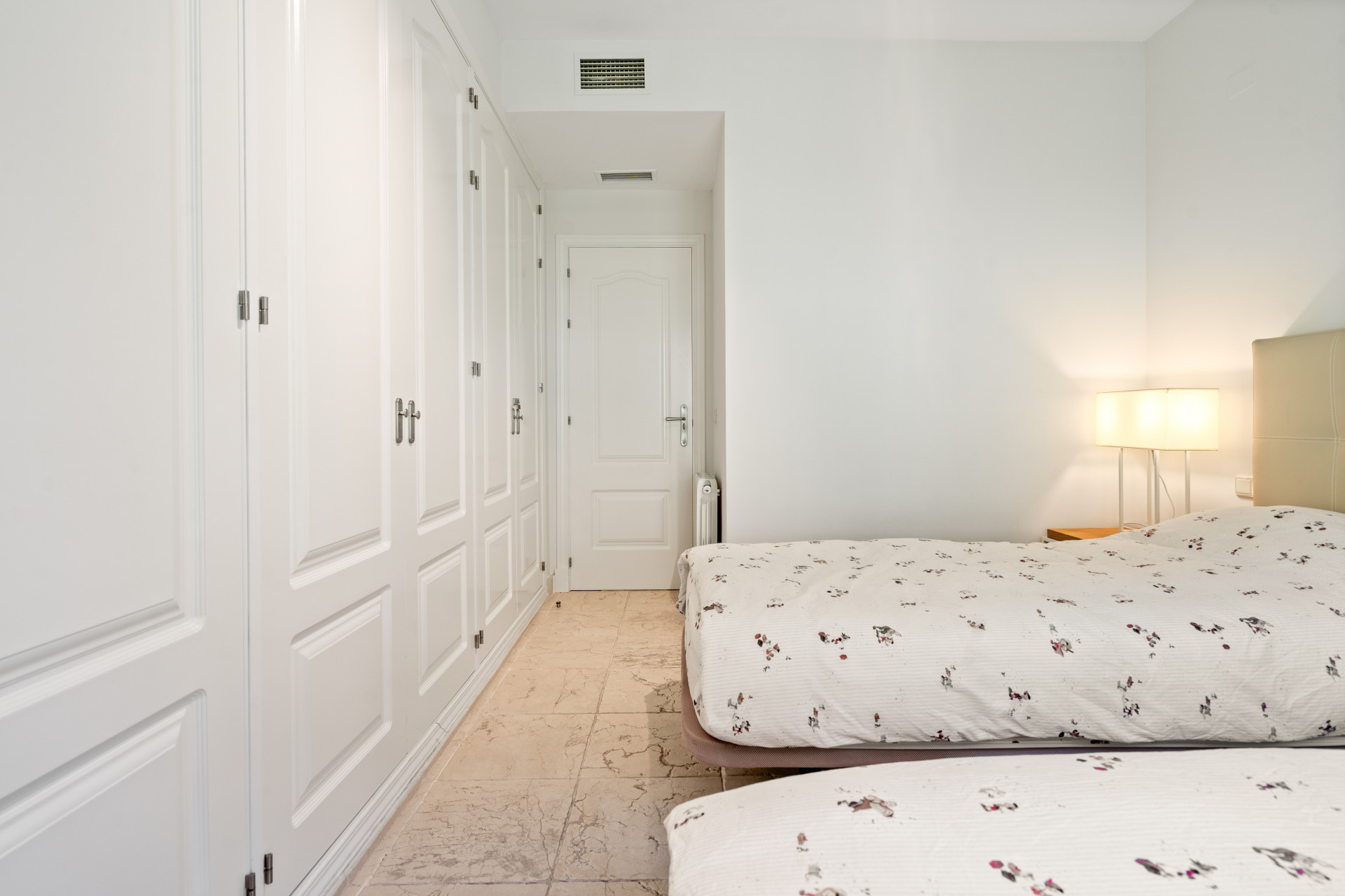 This elegant two-bedroom, two-bathroom apartment offers a bright and spacious layout designed to maximise comfort and natural light. The stylish living and dining area opens directly onto a generous terrace, where stunning panoramic views of the Mediterranean Sea and the lush Los Flamingos golf course create the perfect setting for relaxing or entertaining.
