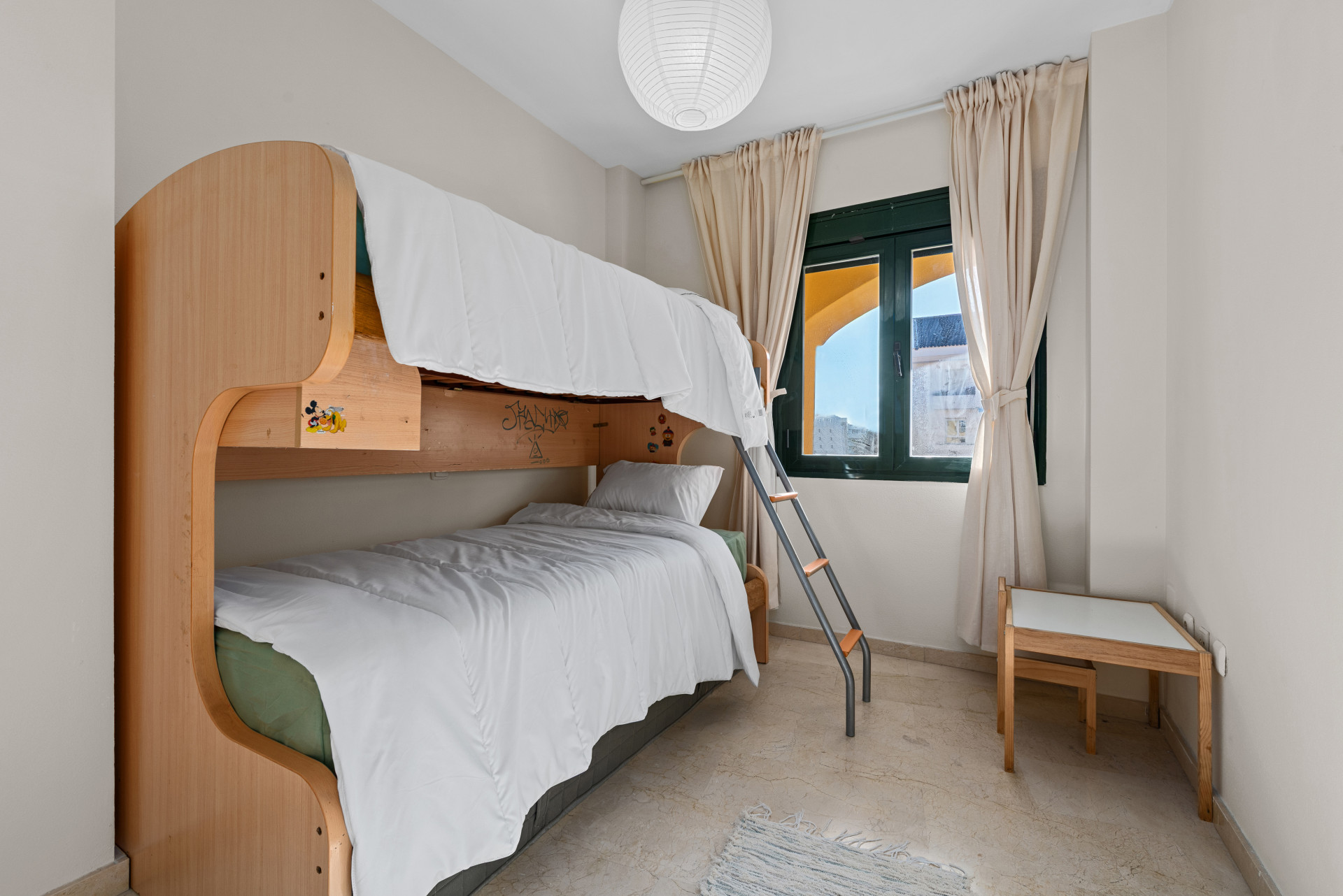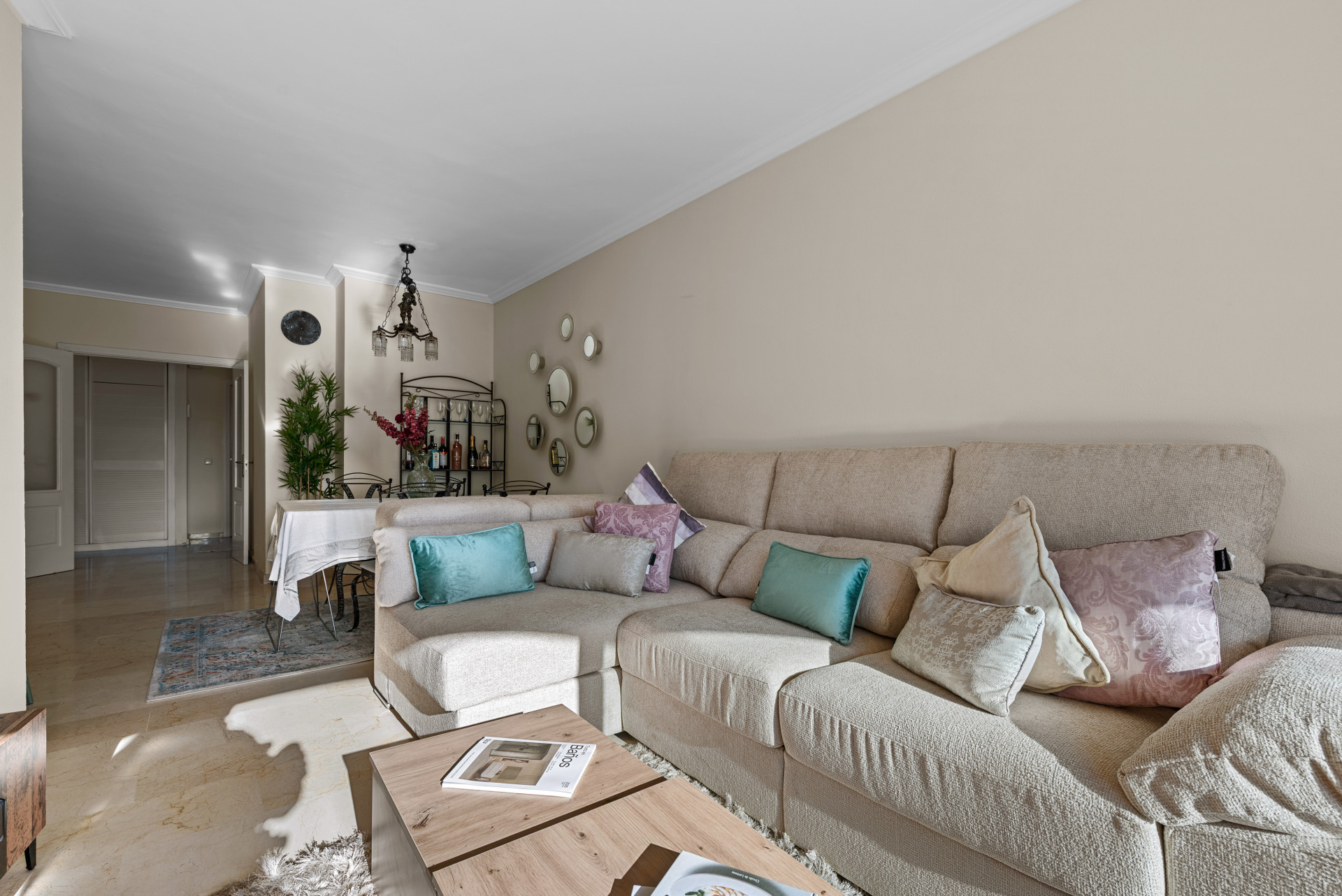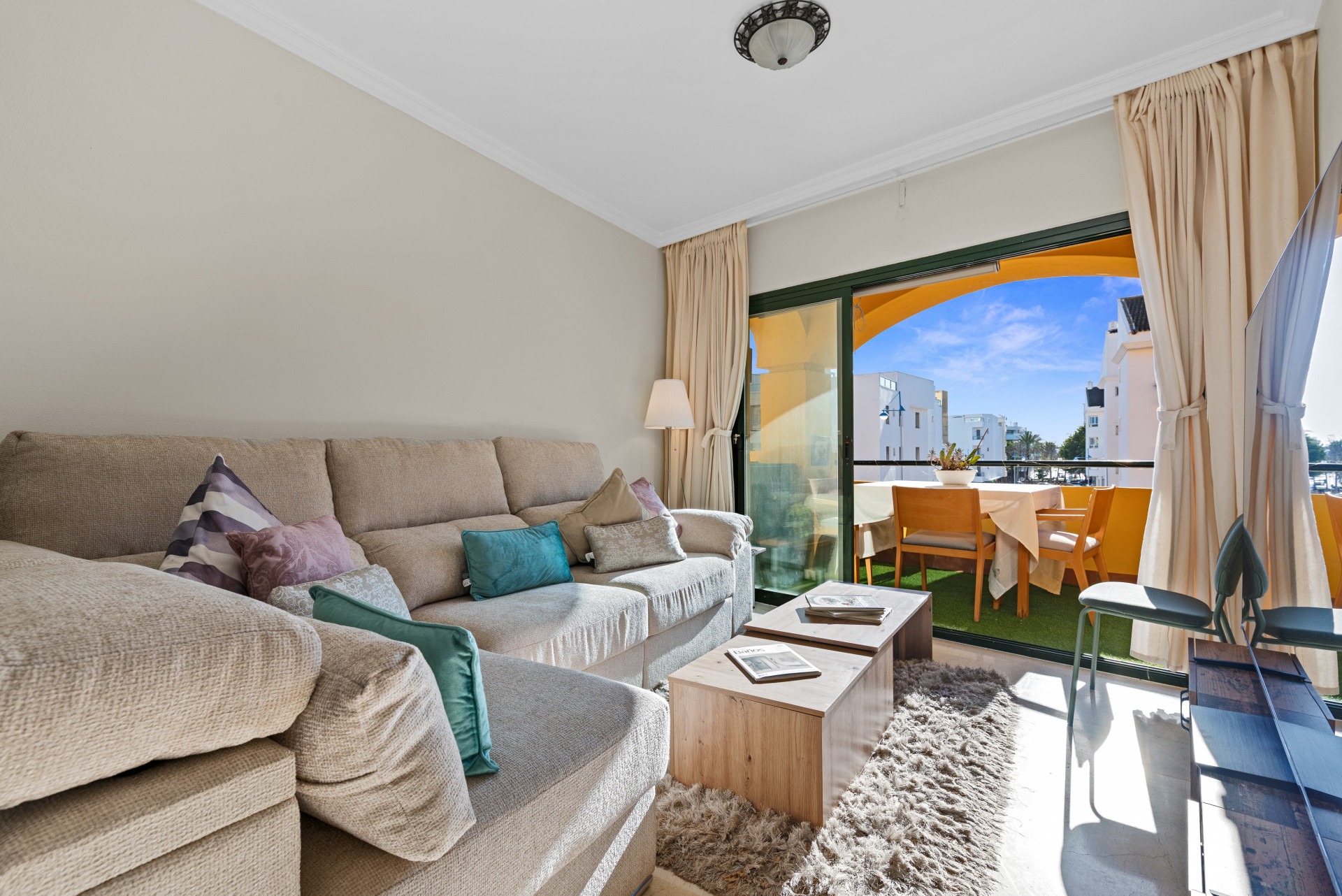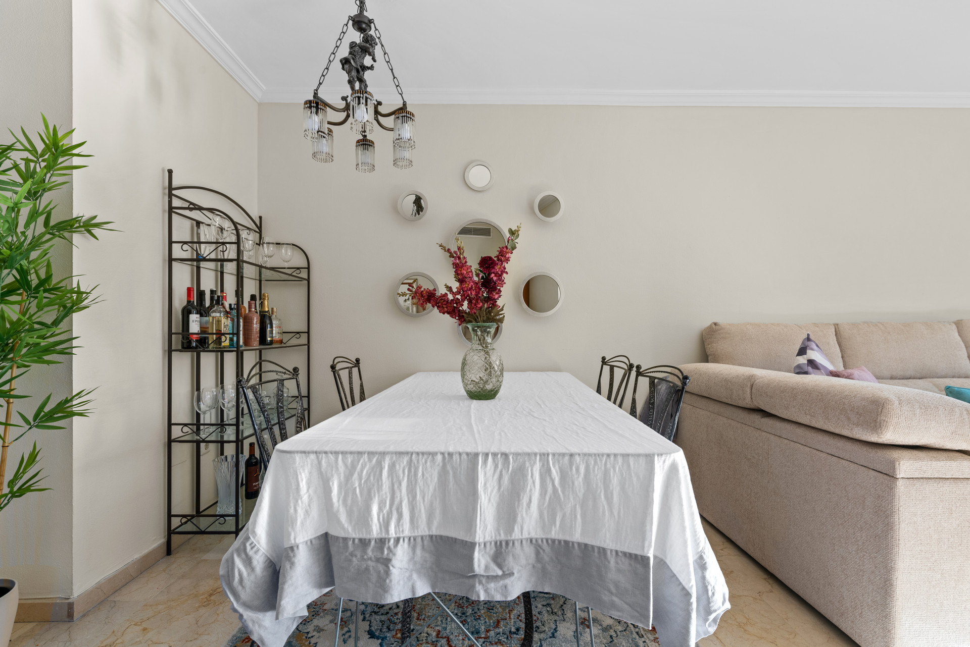 Well-presented three-bedroom apartment located in the established El Mirador community in Nueva Alcántara, within easy walking distance of the beach, boulevard, and all local amenities. The property offers a bright living and dining area with direct access to a covered west-facing terrace, providing good natural light throughout the afternoon and evening. The terrace is well-sized and suitable for outdoor dining.
