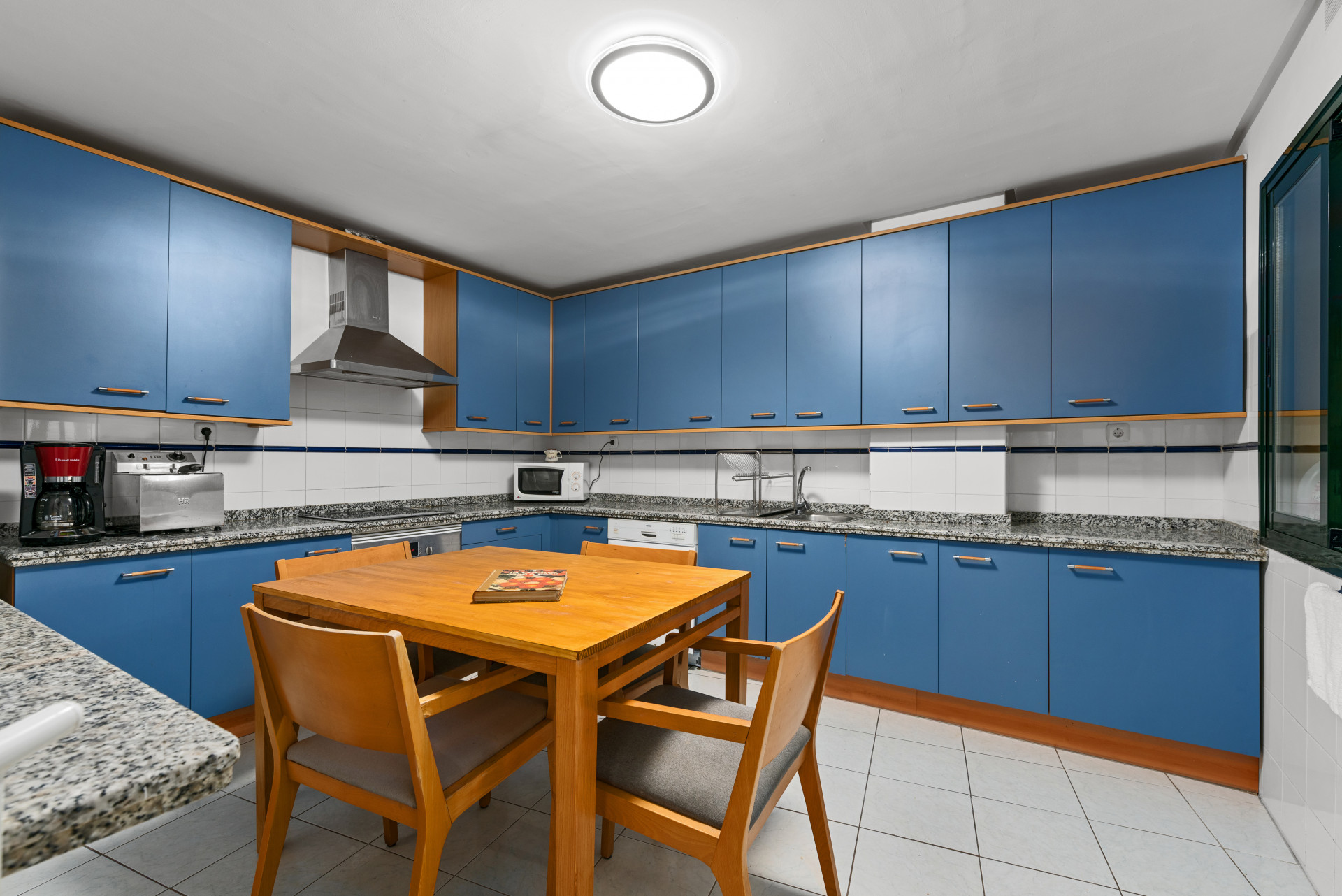 The kitchen is fully fitted with ample storage and includes a separate dining area.