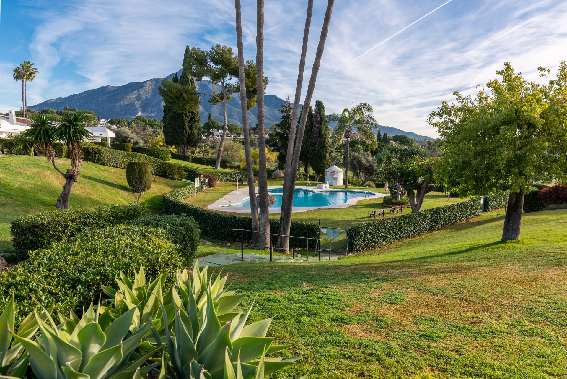 Semi-detached bungalow located in the heart of Nueva Andalucía, within the established Los Dragos community.