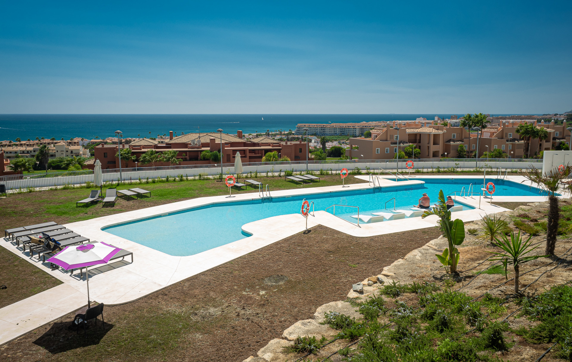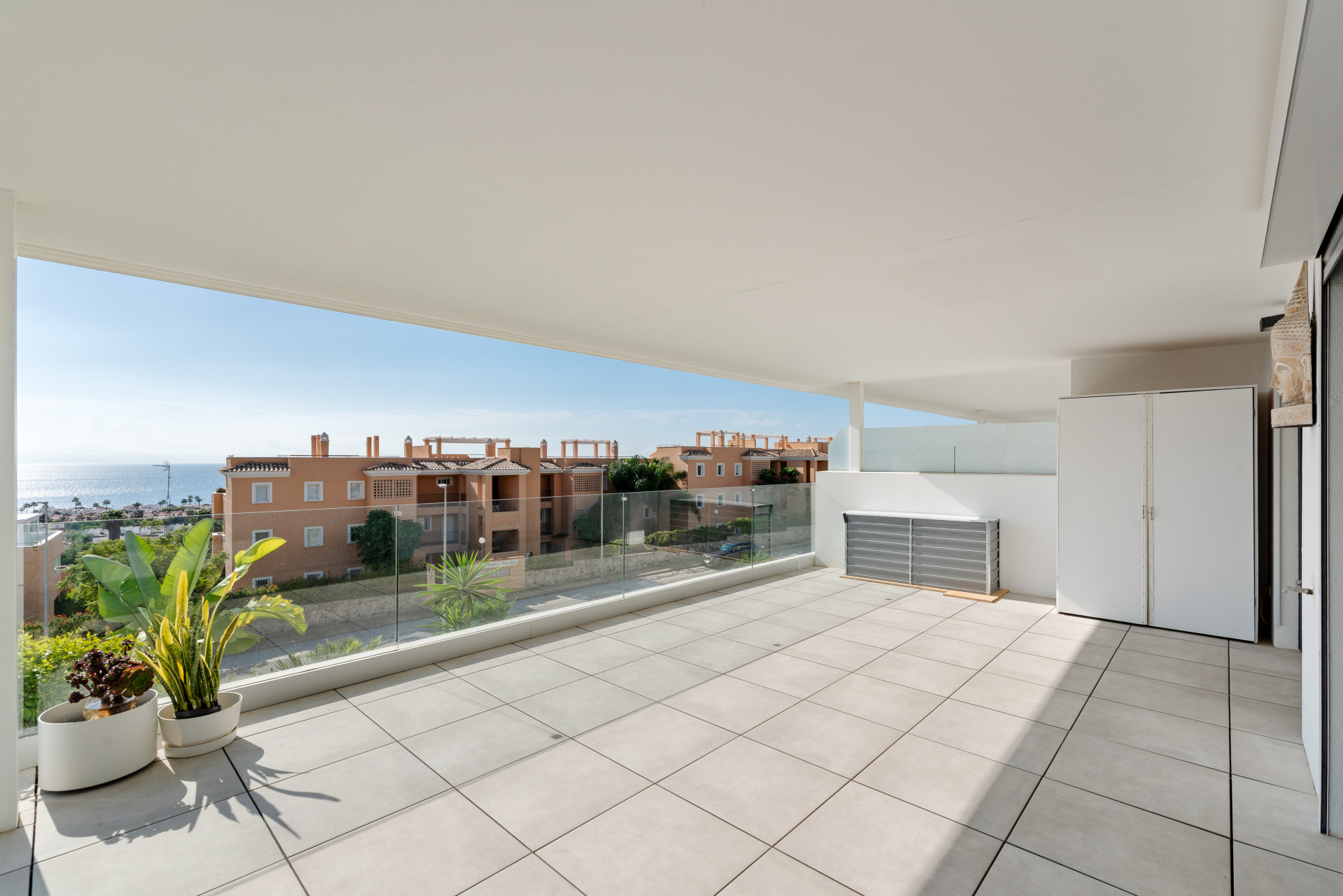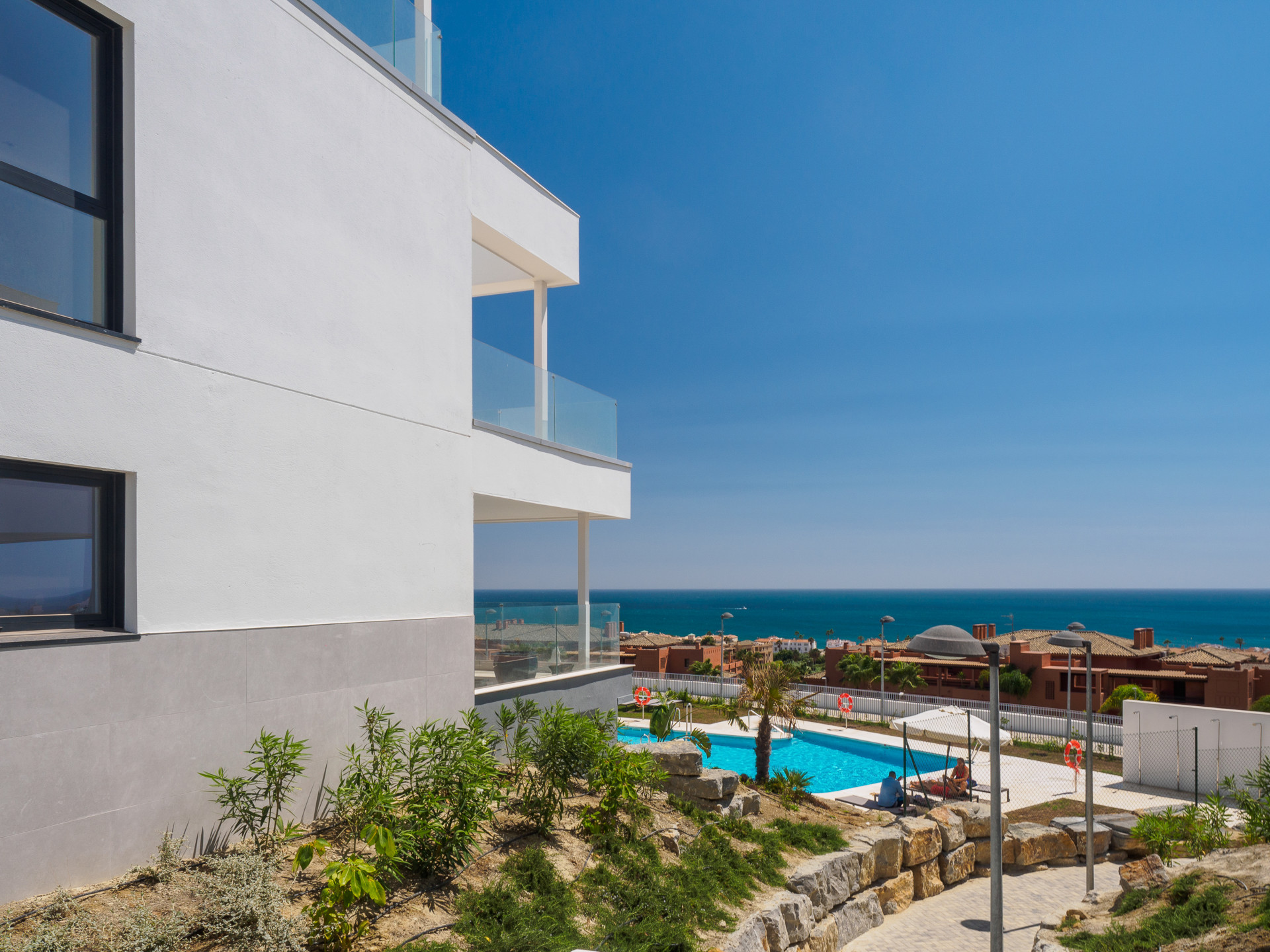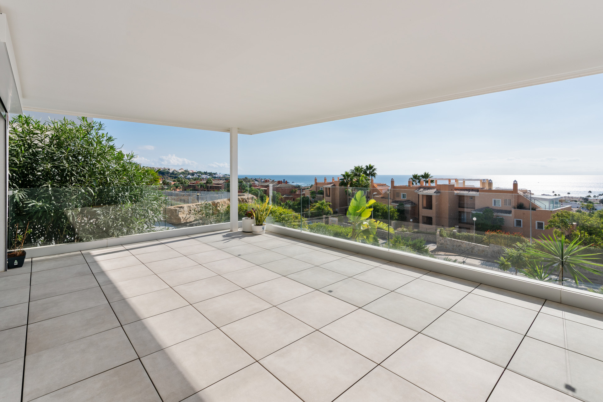 The spacious terrace enjoys spectacular views of the sea and the coastline, as well as the Moorish castle at Casares Costa.