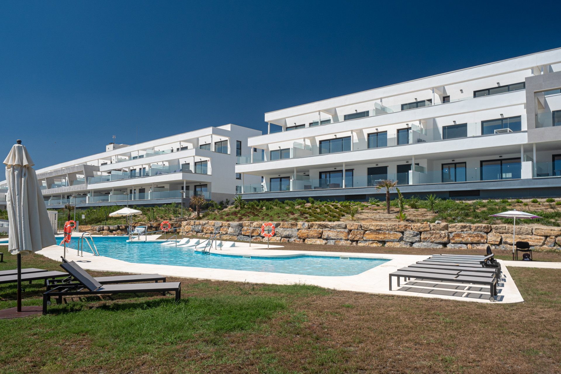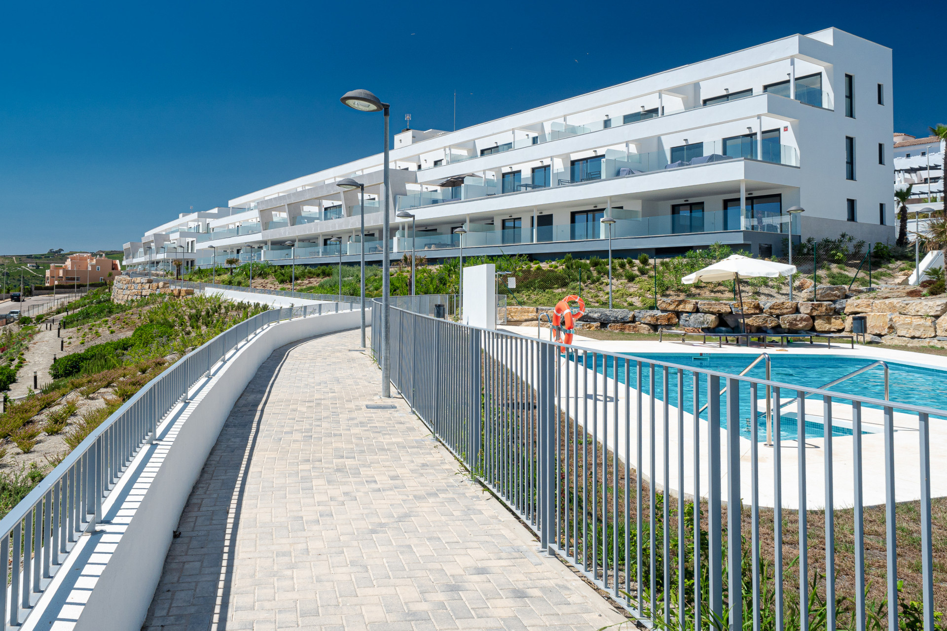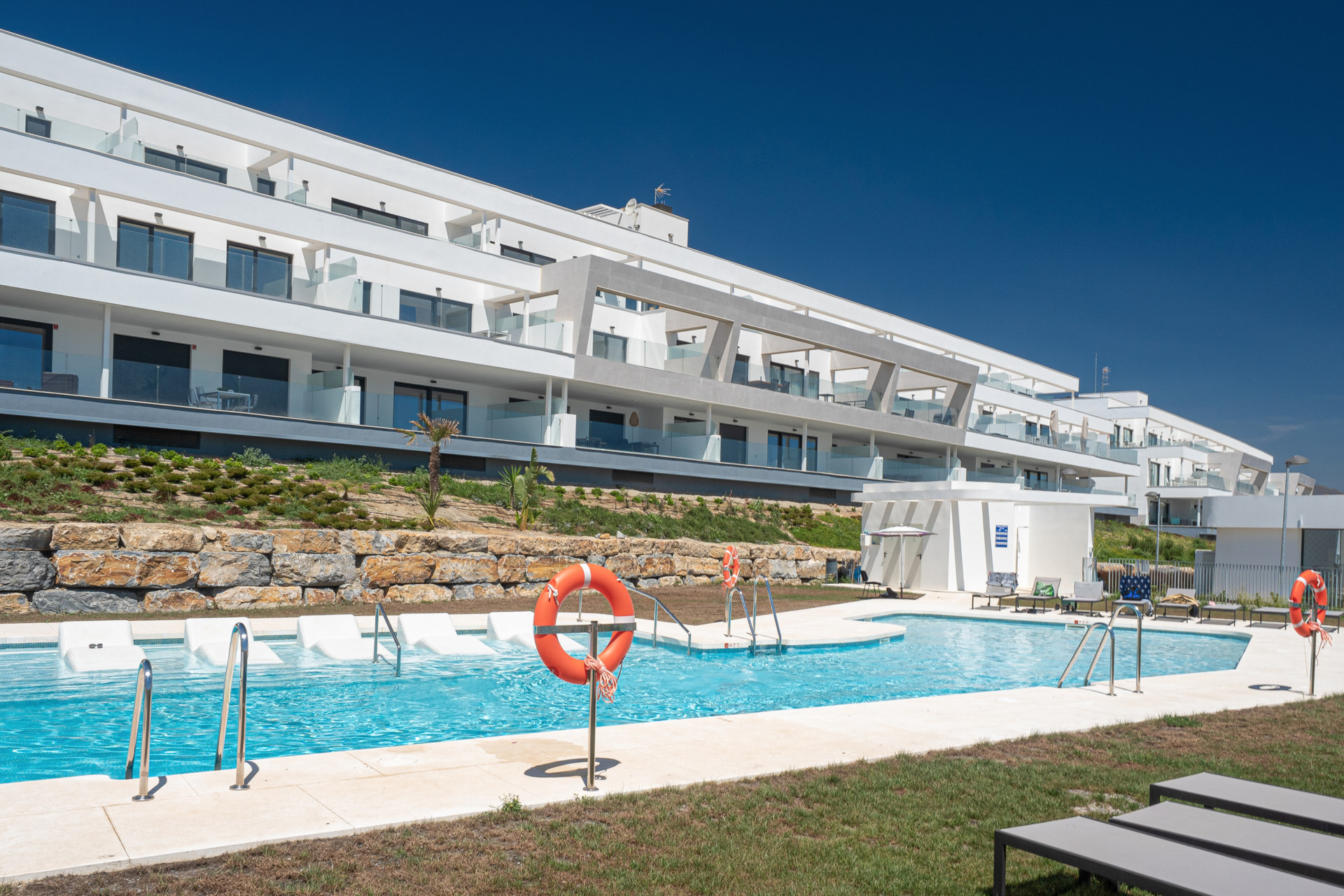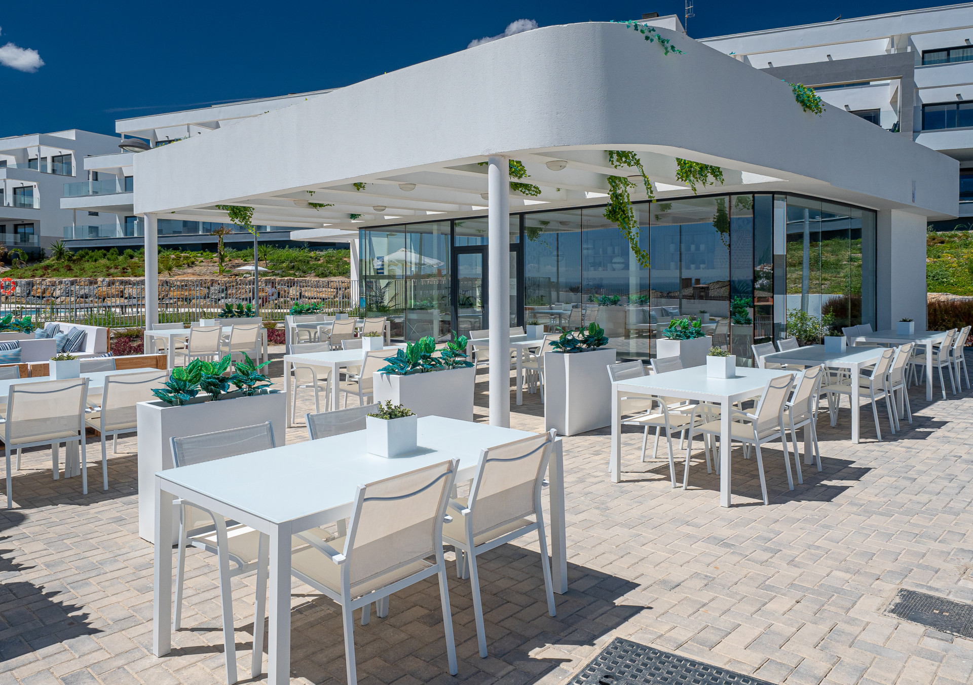 The spacious terrace enjoys spectacular views of the sea and the coastline, as well as the Moorish castle at Casares Costa.