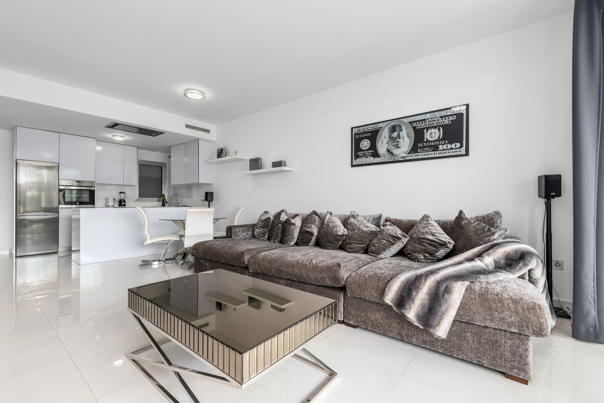 There is a spacious lounge and an open plan kitchen which is fully fitted with all appliances. The property is to be sold alongside an underground parking space and storage room.